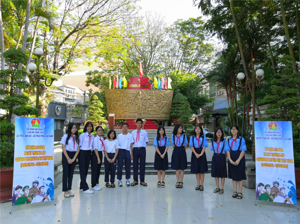 Nhằm chào mừng 75 năm ngày thành lập Quân Đội Nhân Dân Việt Nam (22/12/1944-22/12/2019), sáng ngày 09/12/2019, Liên đội THCS Bàn Cờ và Liên đội THCS Phan Sào Nam tổ chức cho các em đội viên đi dâng hương tại Đài Liệt sỹ Quận 3 và Khu tưởng niệm công viên Thích Quảng Đức.