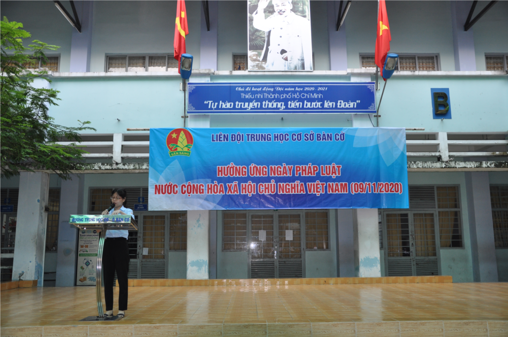 | Liên đội trường THCS Bàn Cờ tích cực hưởng ứng Ngày Pháp luật nước Cộng hòa xã hội chủ nghĩa Việt Nam 09/11/2020, phát huy tinh thần sống và làm việc theo Hiến pháp và pháp luật. Bên cạnh đó trong buổi sinh hoạt chào cờ, Liên đội còn trao cờ luân lưu tuần 9 cho các lớp 6/8, 7/5, 8/6 và 9/1. |